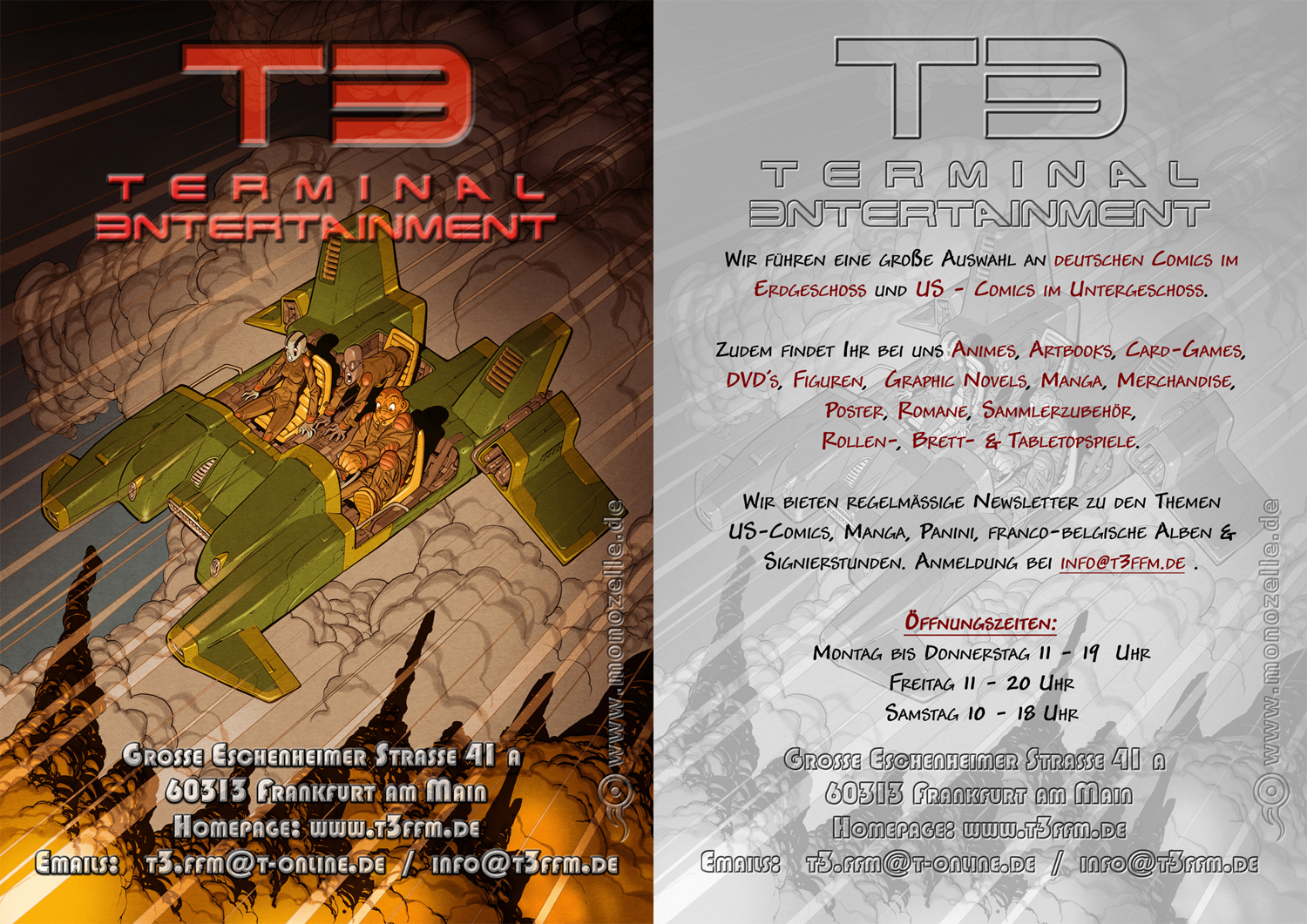Frisch aus der Druckerei erreichte uns der neue T3-Flyer. Natürlich haben wir wieder das wunderbare Raumschiff-Motiv vom einzigartigen Ingo Römling verwendet.