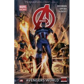 Im ersten Band „Avengers World“ wird die Grundlage für Hickmans Vision gelegt. In der gleichnamigen ersten Story wird die Grundbedrohung für die Erde definiert und dann kurzfristig gelöst. Allerdings wirft dies mehr Fragen als Antworten auf, was dazu führt, dass Stark und Rogers das Team deutlich vergrößern. In den folgenden drei Heften des ersten Sammelbandes werden die Hintergründe der neuen Figuren Hyperion, Smasher und Captain Universe aufgearbeitet.